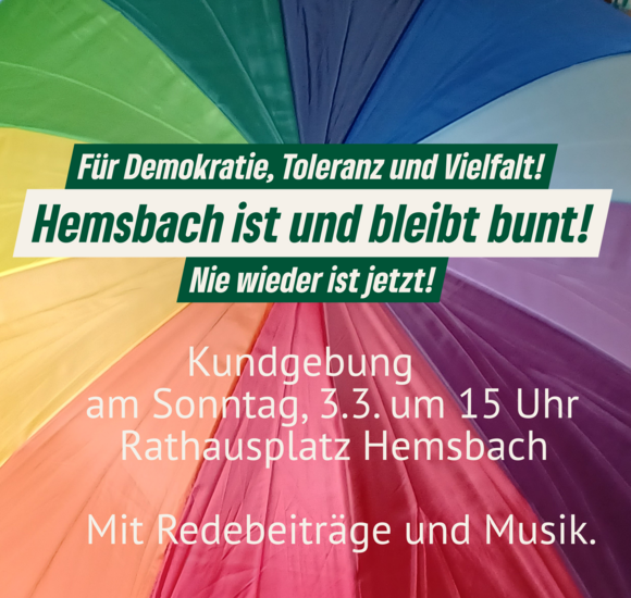 Wir stellen uns entschieden gegen jegliche Form von Rechtsextremismus, Fremdenfeindlichkeit und Diskriminierung. Wir glauben an eine offenherzige und tolerante Gesellschaft in Hemsbach, in der Vielfalt nach wie vor als Stärke betrachtet wird. Daher setzen wir uns aktiv für ein respektvolles Miteinander ein und kämpfen gegen rechte Ideologien, die unsere demokratischen Grundwerte gefährden.