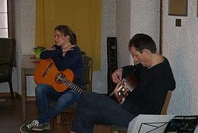 Rund 40 Gäste zählte die Veranstaltung, an deren Beginn Corinna Darsch ungewohnte Bluesklänge auf ihrer Tiroler Harfe erklingen ließ.